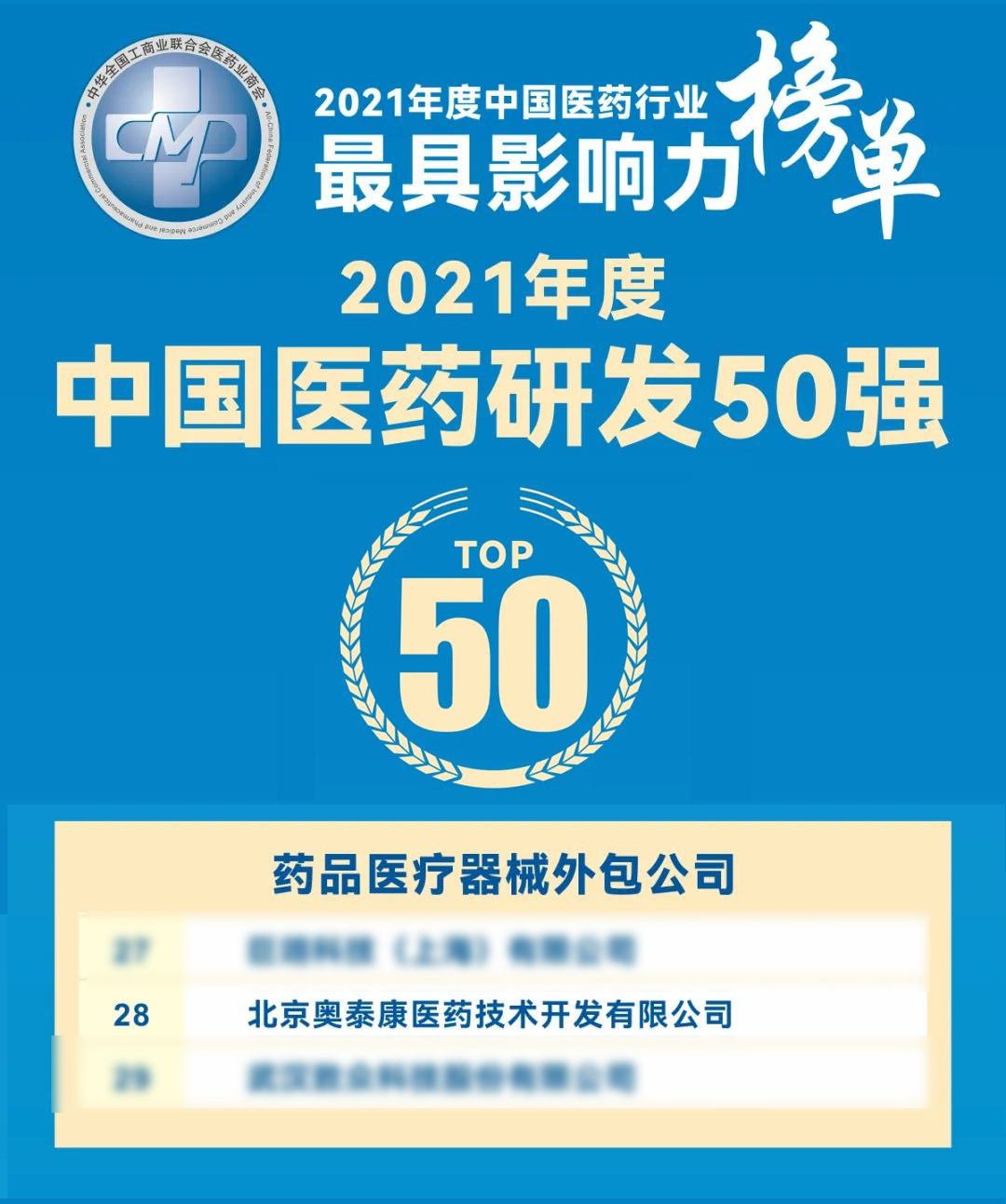 ●入圍全國工商聯(lián)醫(yī)藥研發(fā)50強(qiáng)