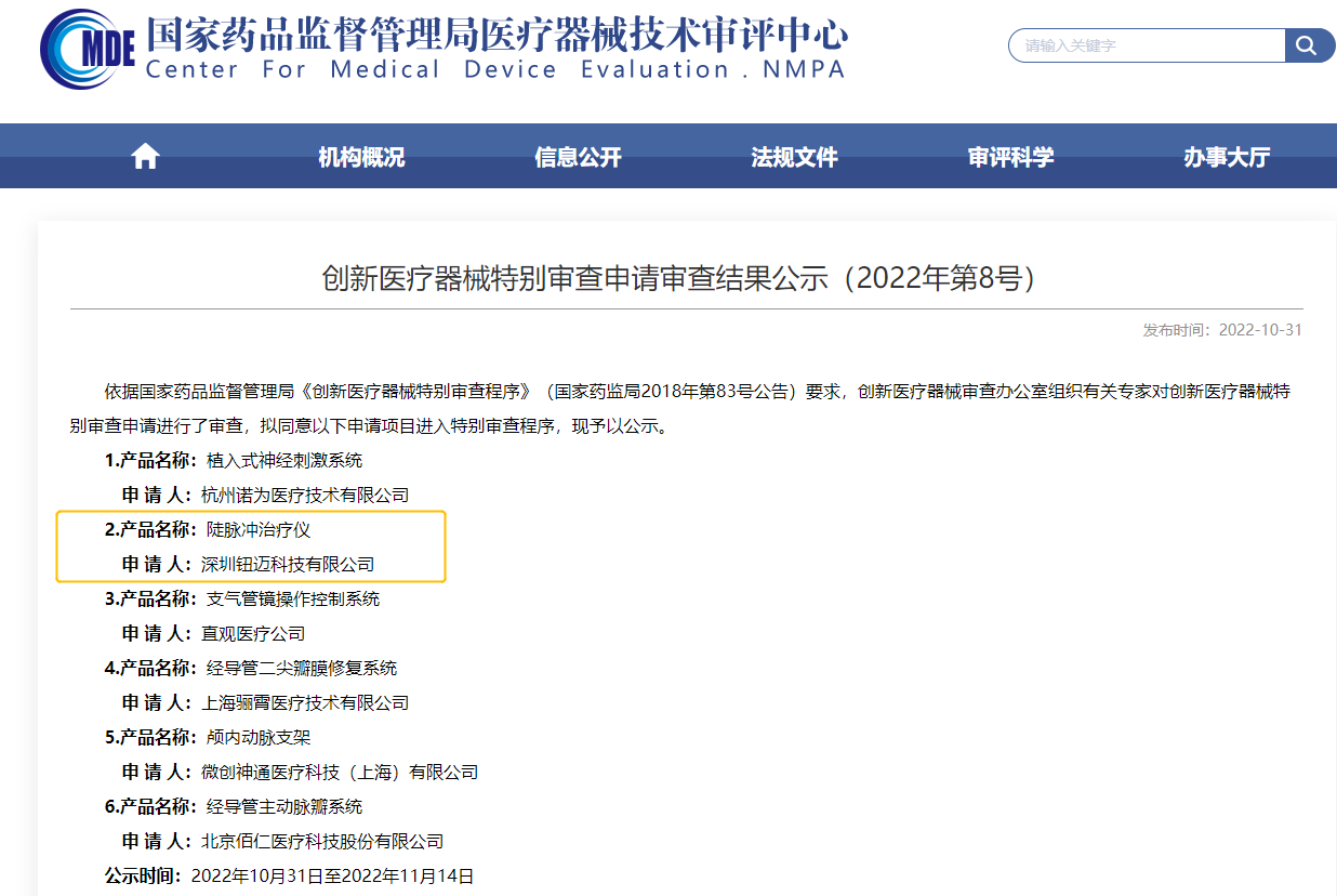 10月31日,深圳鈕邁科技研發(fā)的創(chuàng)新醫(yī)療器械“陡脈沖治療儀”進(jìn)入特別審查程序,奧泰康提供創(chuàng)新申報(bào)和臨床試驗(yàn)服務(wù),系第18項(xiàng)創(chuàng)新產(chǎn)品臨床服務(wù)。