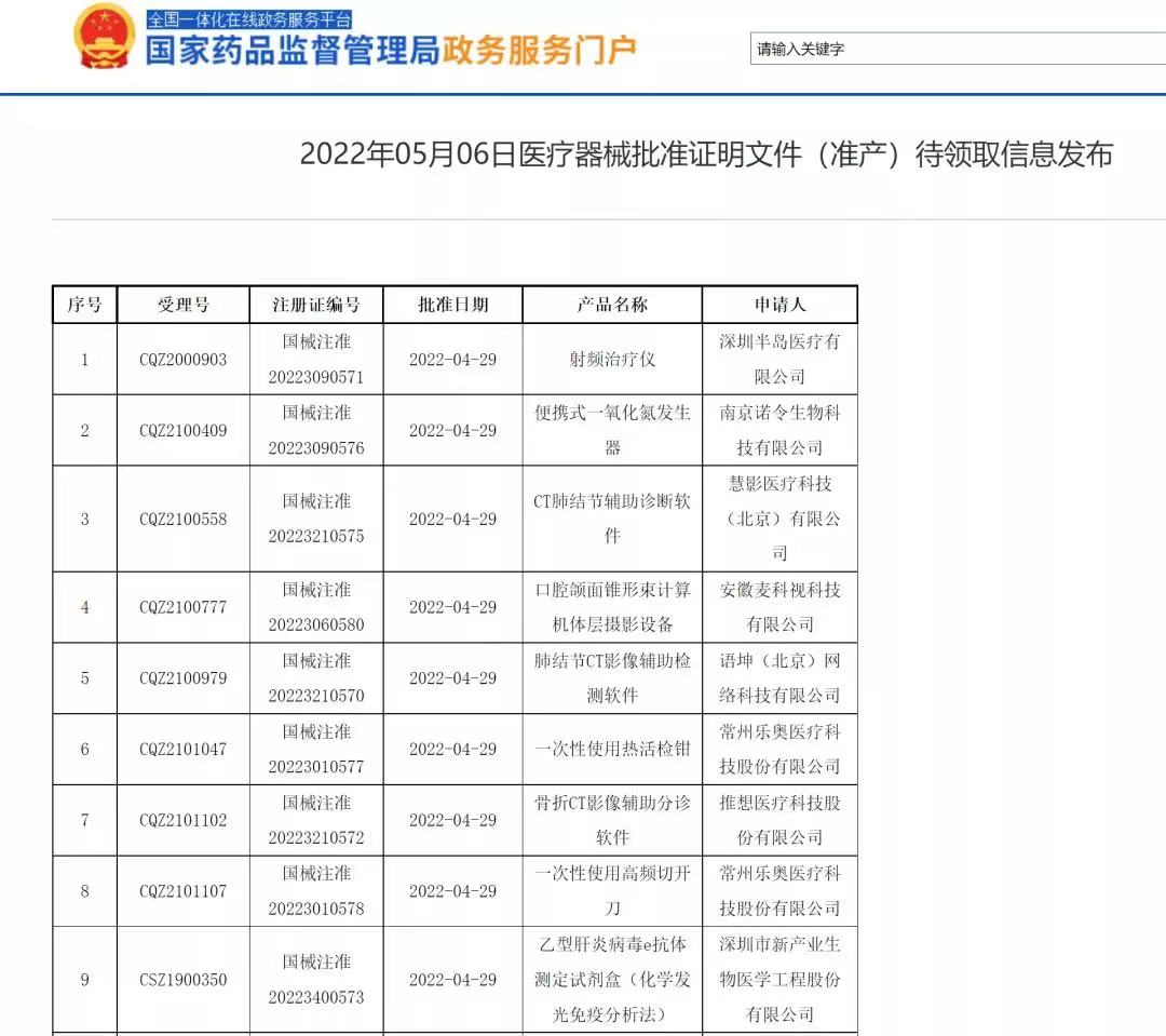 5月6日,奧泰康擔(dān)任臨床試驗(yàn)服務(wù)顧問,助力兩款CT肺結(jié)節(jié)輔助診斷軟件獲國家藥監(jiān)局批準(zhǔn)上市。截至目前,奧泰康已深度參與50余個(gè)人工智能(AI)臨床注冊(cè)項(xiàng)目,并獲得9張三類醫(yī)療器械注冊(cè)證。
