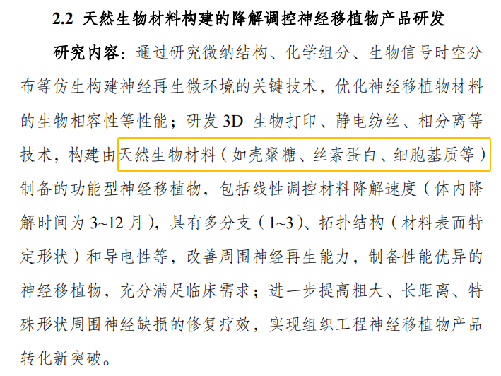 征求意見稿中提到,“從組織工程材料的發(fā)展趨勢看來,具備良好的生物相容性及體內(nèi)可吸收性的天然生物材料將受到青睞。天然生物材料在結(jié)構(gòu)、力學、和生物降解性能可控的情況下,在臨床應用中具備巨大潛力。其中來源于天然桑蠶絲的絲素蛋白不僅具有良好的生物相容性,同時還具有較高的力學強度與較慢的降解速率,植入體內(nèi)免疫原性低,原料來源廣泛,易于加工制造,可被制成多種形態(tài)的支架用于不同組織的修復,現(xiàn)已受到越來越多的重視,不斷有研究將其用于組織再生并進行產(chǎn)品開發(fā)。絲素蛋白作為一種優(yōu)秀的生物醫(yī)用材料具有巨大的市場前景。”
