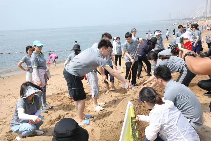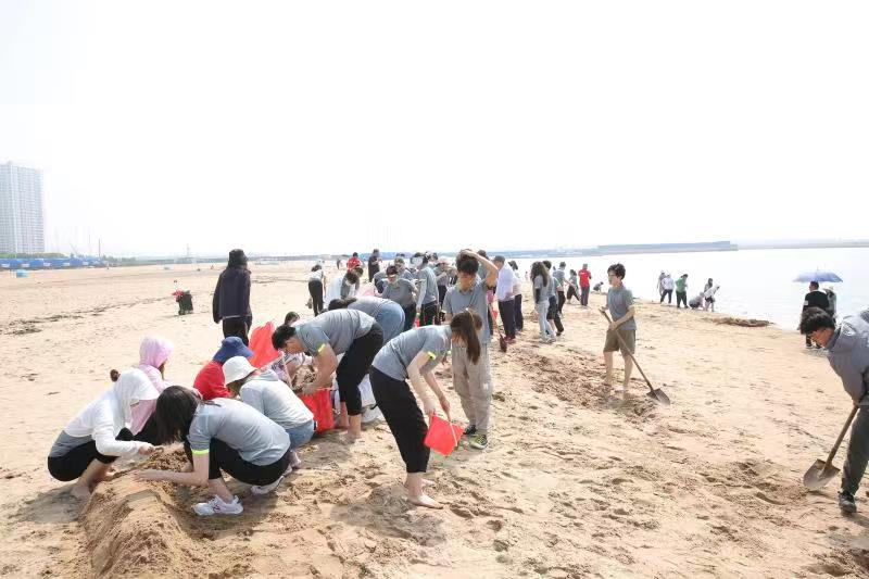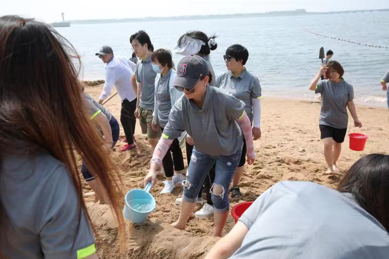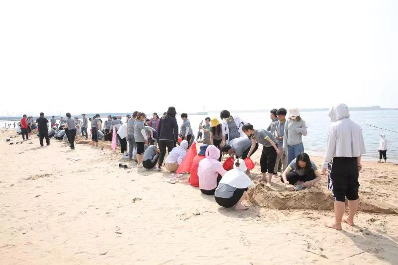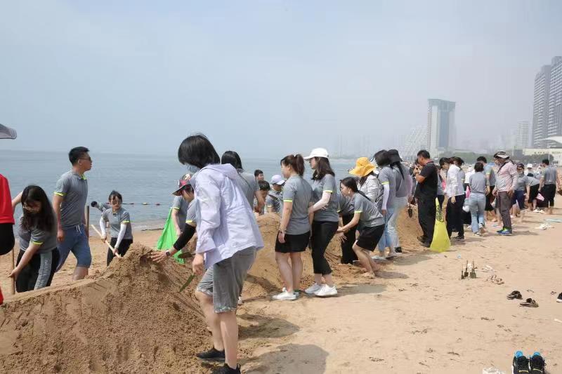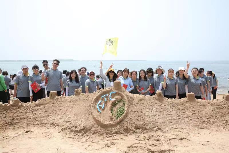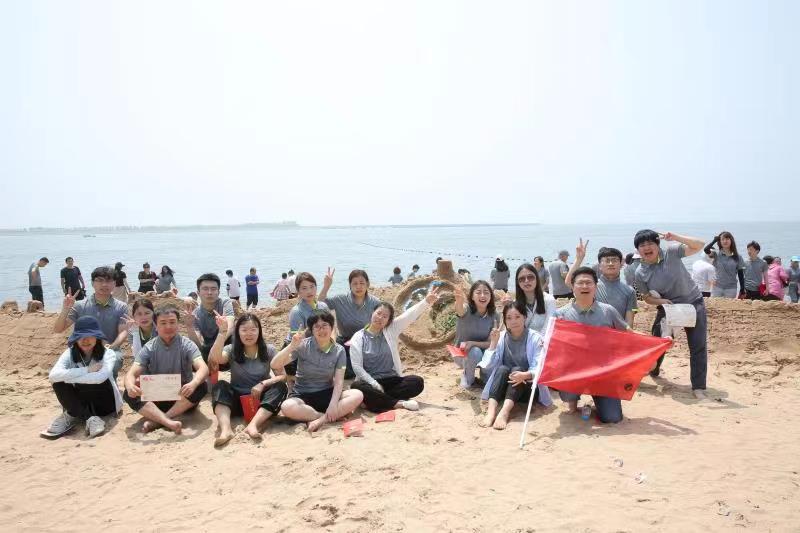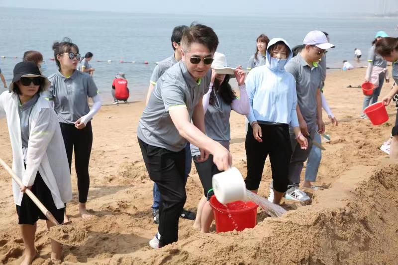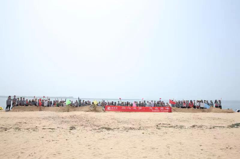 海邊沙灘,全體奧泰康人共同構(gòu)筑了一座長(zhǎng)40余米、高1米的沙雕長(zhǎng)城,每組隊(duì)員分工明確—鏟沙、運(yùn)水、堆砌,聚沙成塔,經(jīng)過(guò)兩小時(shí)的共同搭建,眾志成城,一座巍峨壯闊的沙雕長(zhǎng)城矗立在沙灘上。