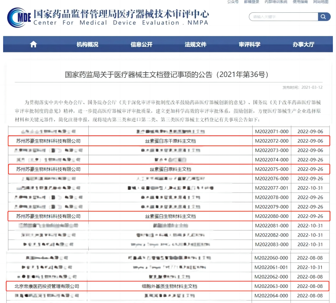 8月,CDMO中心四款醫(yī)療器械原材料通過主文檔登記備案(絲素蛋白凍干原料、絲素蛋白原料、絲素蛋白生物材料、細(xì)胞外基質(zhì)生物材料),主文檔備案的通過為醫(yī)藥行業(yè)細(xì)胞外基質(zhì)和絲素蛋白產(chǎn)品研發(fā)及生產(chǎn)提供了合法來源的原料,具有里程碑意義。
