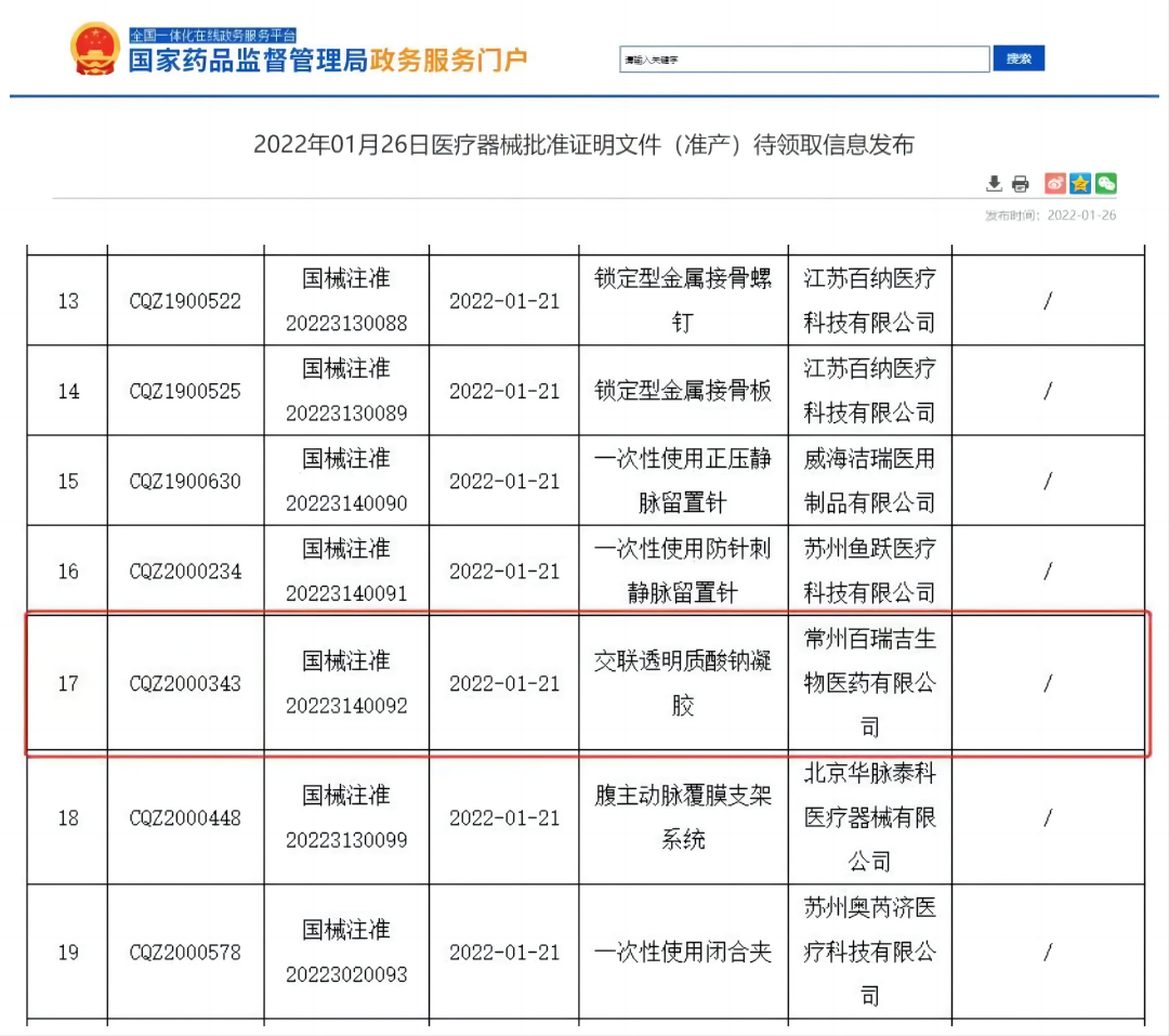 1月26日,常州百瑞吉生物醫(yī)藥有限公司生產(chǎn)的“交聯(lián)透明質(zhì)酸鈉凝膠”獲國家藥監(jiān)局批準(zhǔn)上市,產(chǎn)品用于預(yù)防盆腹腔術(shù)后粘連,奧泰康助力產(chǎn)品獲得市場(chǎng)準(zhǔn)入。