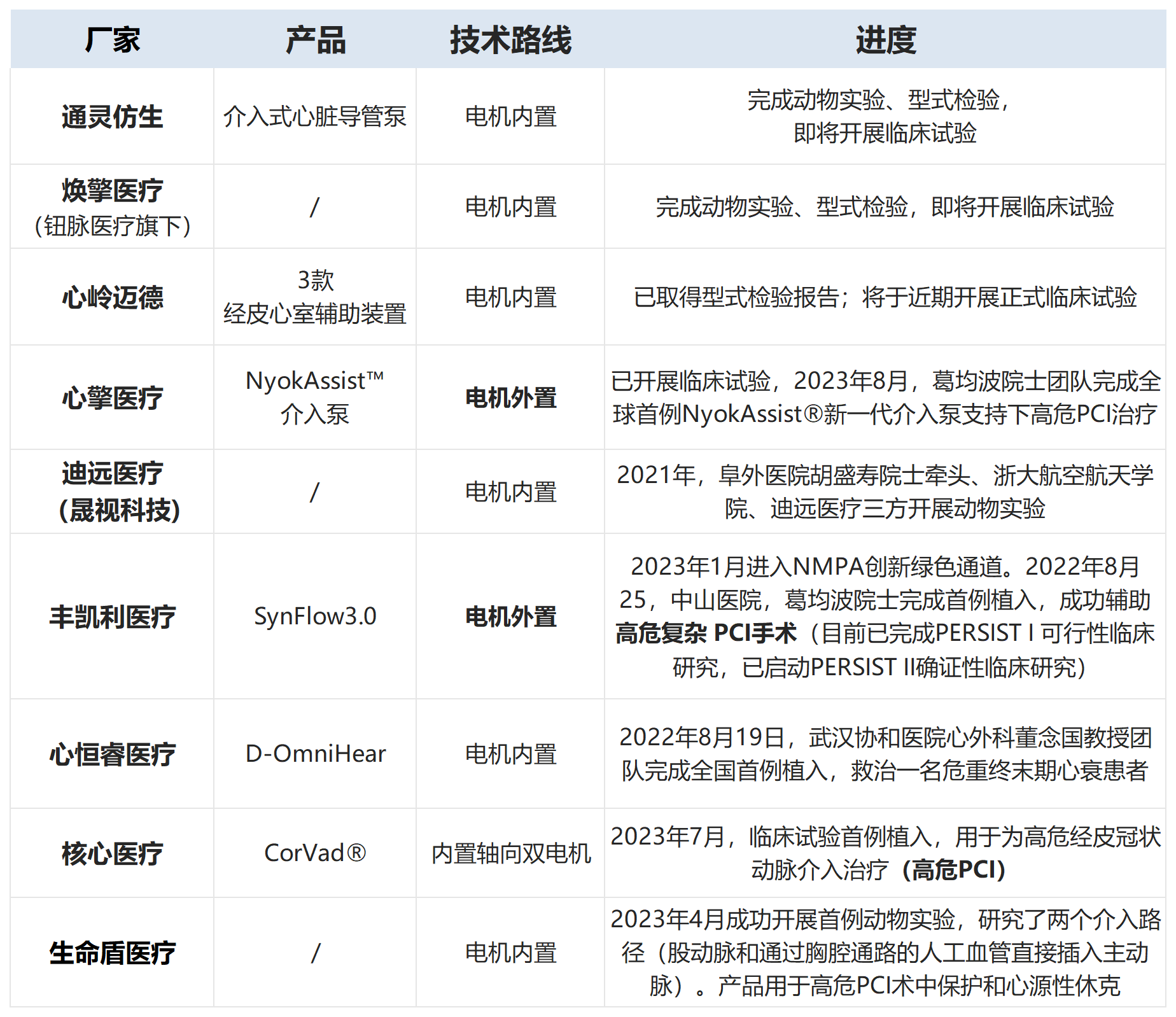 介入式人工心臟是高技術(shù)、高門檻賽道,國內(nèi)有少數(shù)創(chuàng)新企業(yè)布局。其中,心恒睿醫(yī)療、核心醫(yī)療、通靈仿生、心嶺邁德、晟視科技、心擎醫(yī)療、豐凱利醫(yī)療等企業(yè)不僅在資本寒冬期逆勢完成融資,且相關(guān)產(chǎn)品推進(jìn)順利,進(jìn)展極快。