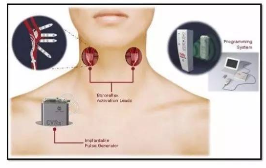壓力感受器是位于頸動脈竇和主動脈弓中的解剖結(jié)構(gòu),壓力感受激活療法 是一種治療心力衰竭的創(chuàng)新性電療法,裝置由植入式脈沖發(fā)生器和頸動脈竇電極組成,通過電刺激頸動脈壁的壓力感受器來調(diào)節(jié)自主神經(jīng)系統(tǒng),可以同時增加迷走神經(jīng)活性并降低交感神經(jīng)活性,從而改善心力衰竭患者心功能和臨床預(yù)后。