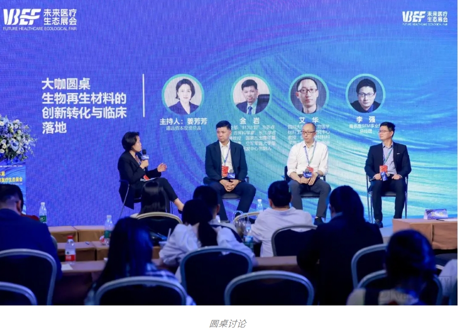 隨后,科技部“973計(jì)劃”與重點(diǎn)項(xiàng)目首席科學(xué)家、長(zhǎng)江學(xué)者特聘教授、國(guó)家杰出青年基金獲得者、空軍軍醫(yī)大學(xué)組織工程研發(fā)中心創(chuàng)始人金巖教授;四川大學(xué)國(guó)家生物醫(yī)學(xué)材料工程技術(shù)研究中心教授、國(guó)際生物材料科學(xué)與工程聯(lián)合會(huì)Fellow艾華教授;奧泰康SFM事業(yè)部總經(jīng)理李強(qiáng)先生以及道遠(yuǎn)資本投資總監(jiān)姜芳芳共同圍繞《生物再生材料的創(chuàng)新轉(zhuǎn)化與臨床落地》這一主題進(jìn)行了分享與探討。