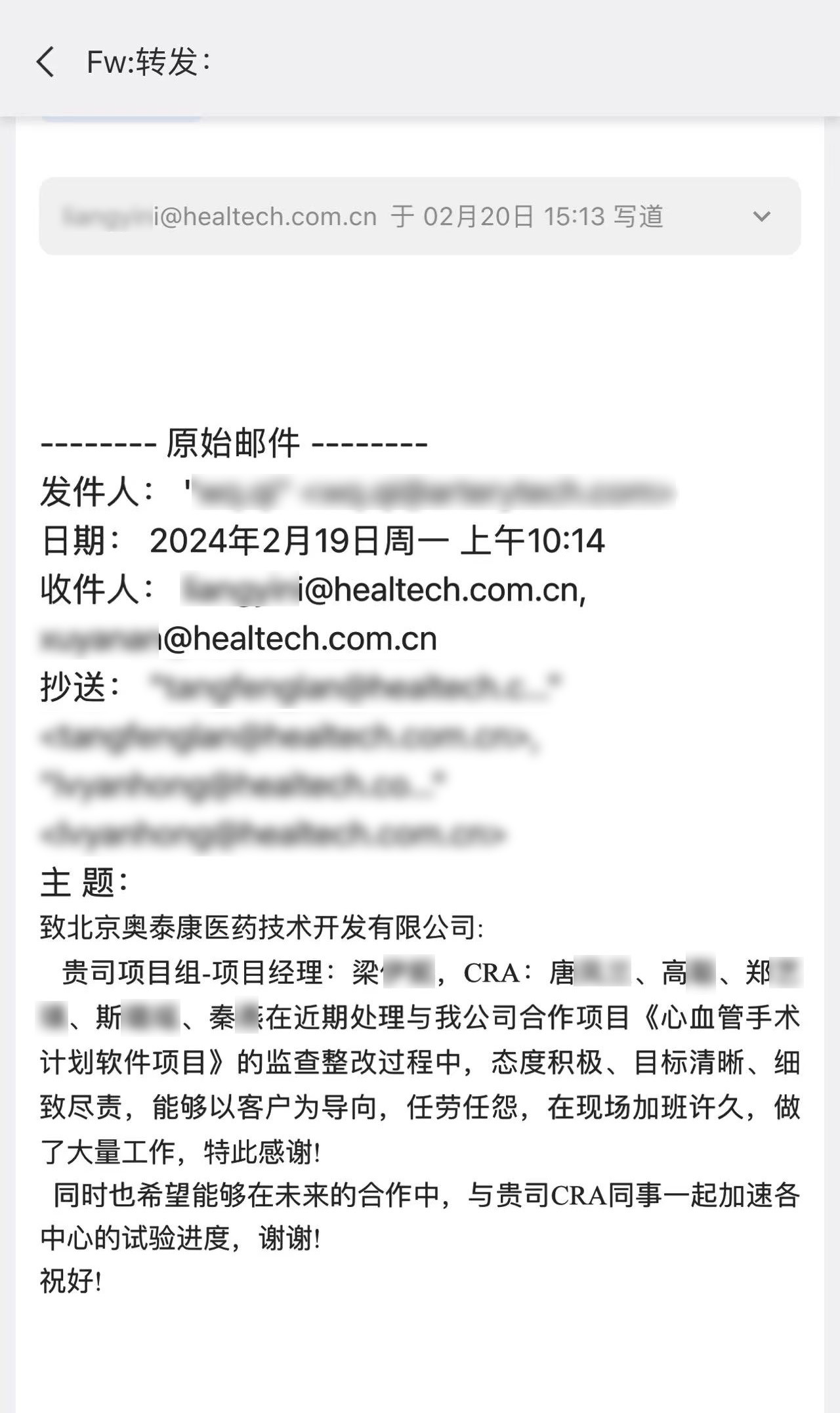 每一個項目的推進離不開臨床團隊的共同努力,一年過半,奧泰康陸續(xù)收到了多封來自合作伙伴的感謝信和表揚信,信中對奧泰康人在臨床試驗項目中的表現(xiàn)給予高度肯定。我們也對他們致以由衷的敬意,感謝他們?yōu)橥七M產(chǎn)品上市付出的不懈努力,讓我們共同查收這些信件吧~